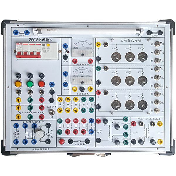 通用电工电子实训室设备设定有较完善的安全保障功能,较齐全的功能(详见实训台构造简介)。通用电工实训室设备实训桌中央配备装备有通用电子线路板,电子线路板注塑而成,表面布有九孔成一组相互联通的插孔,元件盒在其上随意拼插成实训电子线路,通用电工实训室设备元件盒盒体透明,通用电工实训室设备直观性好,盒盖印有永不褪色元件符文号,线条清晰美观。通用电工实训室设备盒体与盒盖应用较科学的压卡式构造,维修拆卸装配便利。元件存放在通用电工电子实训室实训桌下边左右储物储物柜内,通用电工实训室设备大大提升了管理水平,规划化程度,大大减轻了教师实训准备作业。